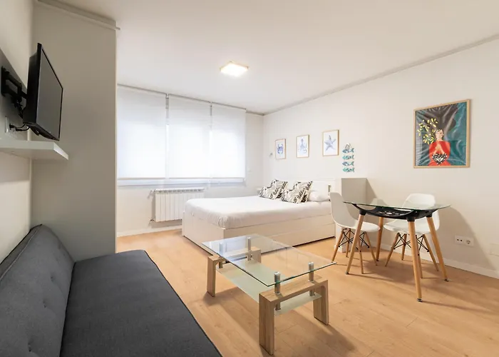 Dieses Apartment bietet eine komplette Küche mit einer Mikrowelle, einem Kühlschrank und Glasgeschirr. Das Restaurant Follas Novas bietet mediterrane Speisen und liegt rund 5 Gehminuten von diesem Apartment entfernt. Die Bushaltestelle Estacion Ferrocarril liegt in ca. 5 Gehminuten Entfernung von diesem 35 m^2 großen Apartment.